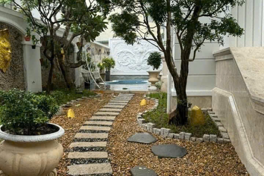 - Kết cấu: 1 hầm, 2 lầu với thiết kế sang trọng, bao gồm: 4 phòng ngủ rộng rãi. Hồ bơi riêng. Sân vườn xanh mát, thoáng mát.