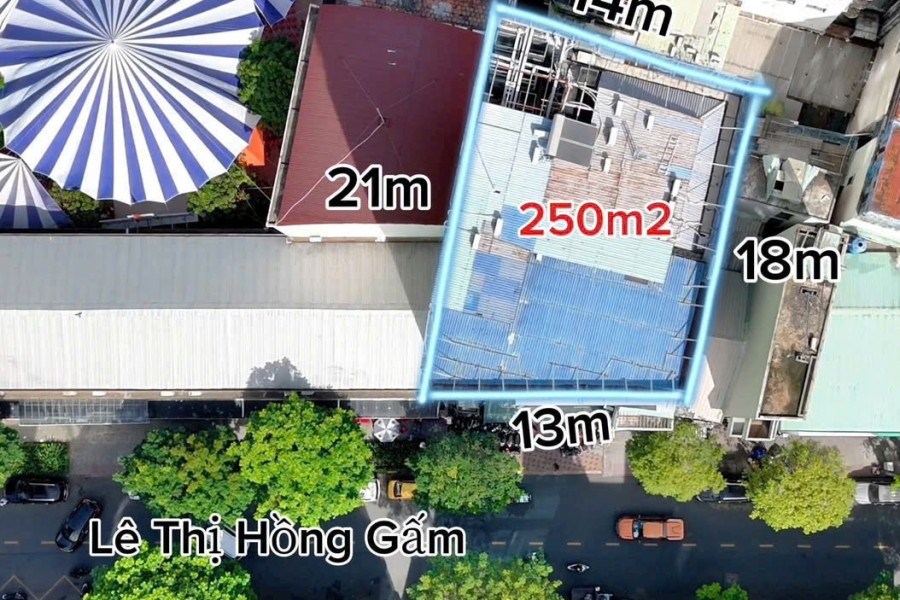 - Diện tích: 250,1m² (Ngang 13,5m x Dài 20m)