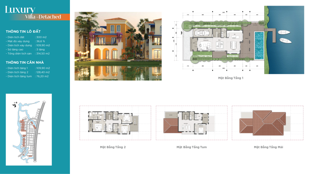 → Biệt thự đơn lập (300m² – 2 tầng, 1 tum)