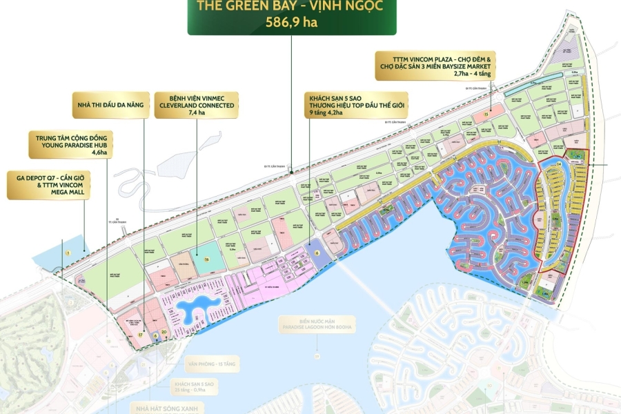 ► Vinhomes Green Paradise (còn gọi là Vinhomes Cần Giờ) là siêu đô thị lấn biển quy mô lớn bậc nhất Việt Nam, do Tập đoàn Vingroup đầu tư và phát triển tại khu dự trữ sinh quyển rừng ngập mặn Cần Giờ – TP.HCM. Với tổng diện tích lên tới 2.870ha, tổng vốn đầu tư hơn 11 tỷ USD, dự án được quy hoạch theo triết lý ESG++ – Xanh – Thông minh – Sinh thái – Tái sinh, kiến tạo chuẩn mực sống bền vững của tương lai.