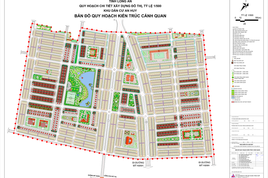 01 Đại lộ Trung tâm . 02 Trục đường Động Lực. 03 Dịch vụ Y tế . 04 Trường Mầm non. 05 Trường Tiểu học . 06 Công viên Trung tâm. 07 Nhà hàng Cung Đình Huế. 08 Nhà Trưng bày. 09 Chợ Bến Thành. 10 Coffee đảo nổi Trường Sa . 11 Đảo Check in. 12 Đền Ngọc Sơn. 13 Chùa Một Cột. 14 Sân chơi trẻ em. 15 Dòng chảy sông Hồng. 16 Bãi giữ xe. 17 Bể bơi ngoài trời. 18 Dòng chảy sông Cửu Long. 19 Tượng đài Long An Trung Dũng Kiên Cường. 20 Trung tâm Thương mại. 21 Nhà Văn hóa. 22 Công viên, vườn hoa, cây xanh tdtt. 23a Nhà máy cấp nước . 23b Hạ tầng kỹ thuật kết nối . 24 Tuyến kết nối các hồ nước. 25 Cổng Nghi Môn. 26 Tháp Bà Ponagar