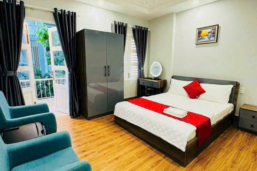 Kết cấu: 1 trệt, 4 lầu, thang máy. Tổng cộng 24 phòng , thiết kế đẹp