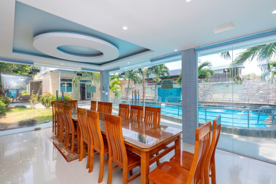 → Sức chứa phù hợp cho nhóm từ 15 – 25 người, thích hợp nghỉ dưỡng hoặc tổ chức tiệc nhỏ.