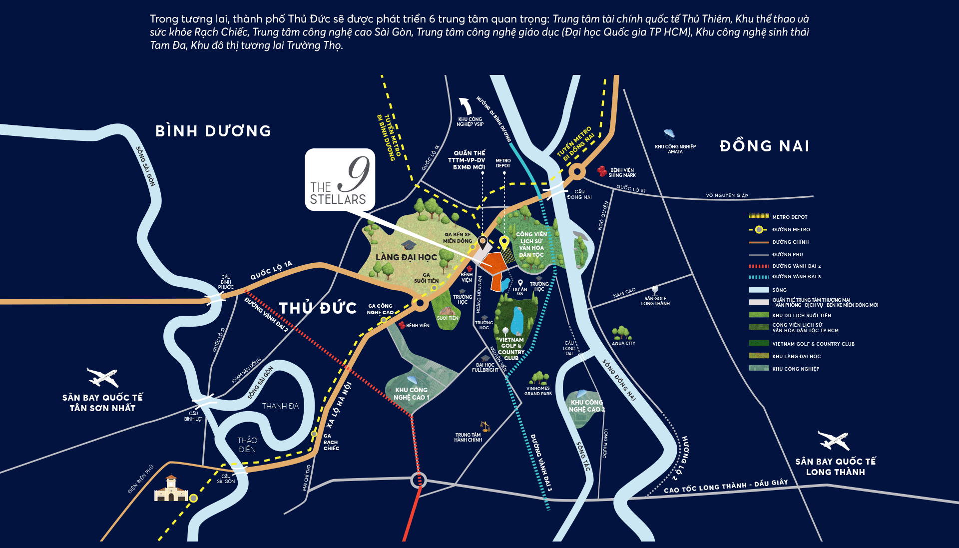 ► The 9 Stellars sở hữu vị trí đắc địa bậc nhất Quận 9, liền kề các công trình hạ tầng trọng điểm: