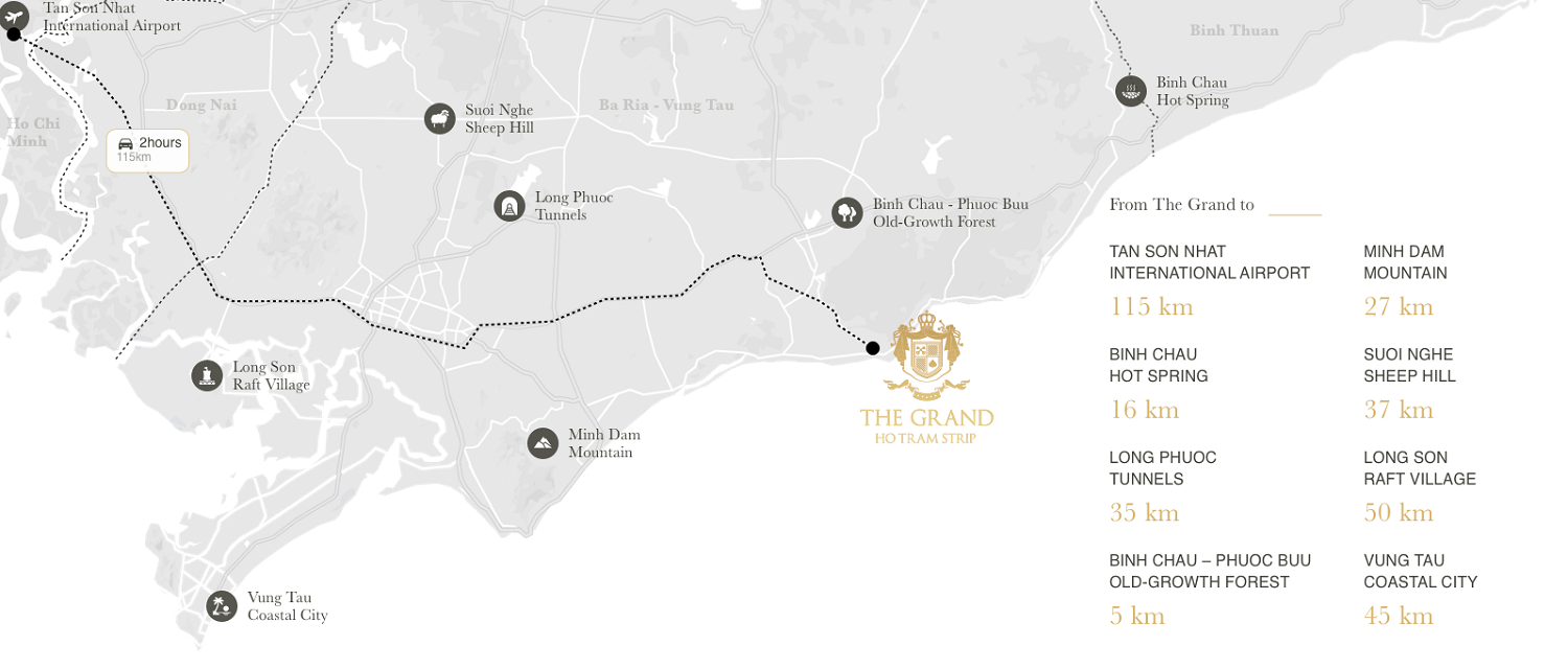 ⇒ The Grand Hồ Tràm nằm trong “tam giác vàng du lịch phía Nam”: TP.HCM – Bà Rịa – Bình Thuận, đón đầu làn sóng đầu tư và nghỉ dưỡng cao cấp.
