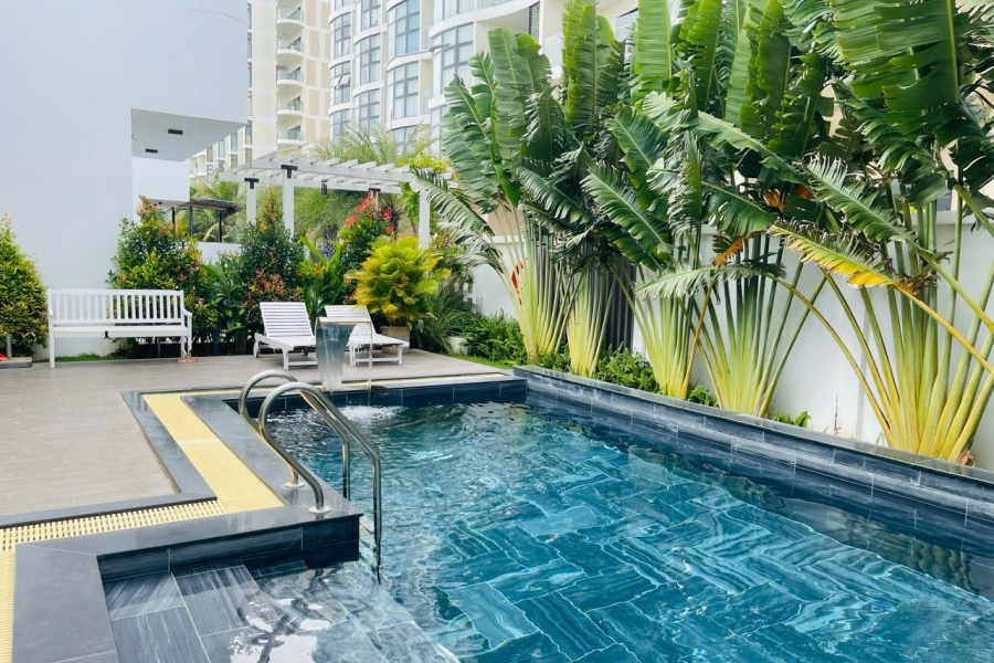 → Không gian hồ bơi rộng, sạch sẽ, lý tưởng để thư giãn hoặc tổ chức tiệc hồ bơi cùng bạn bè và người thân.