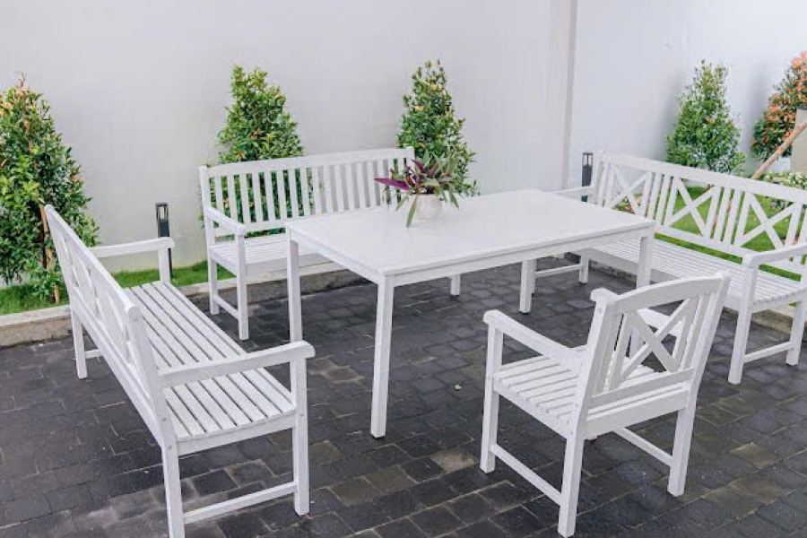 → Khu vực sân rộng rãi, có bàn ghế & bếp nướng BBQ.