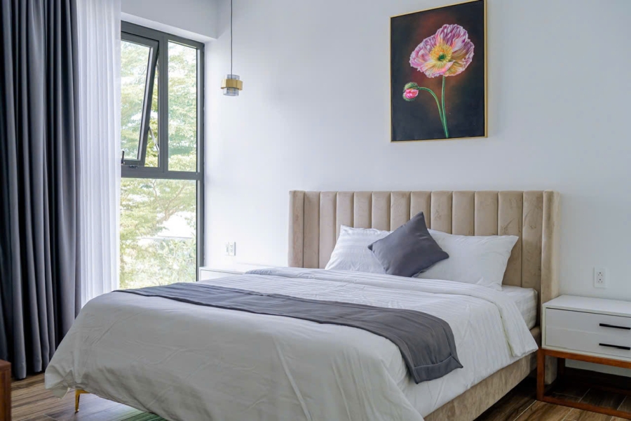 → 5 phòng ngủ lớn, mỗi phòng đều có view đẹp, thoáng mát, trang bị SmartTV 43 inch.