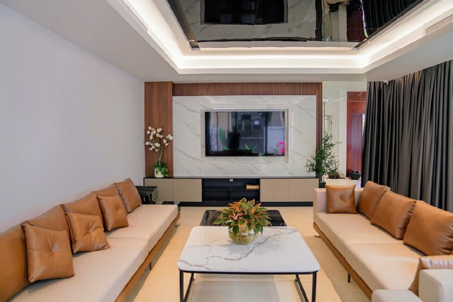 → Trang bị SmartTV 75 inch, hệ thống âm thanh sống động, cách âm tốt.