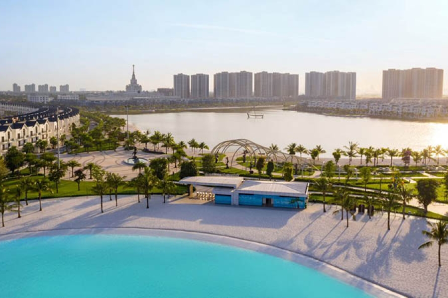 ⇒ Điểm nhấn làm nên thương hiệu chính là hồ điều hòa 24,5ha và biển nước mặn nhân tạo 6,1ha – lần đầu tiên xuất hiện tại Hà Nội.
