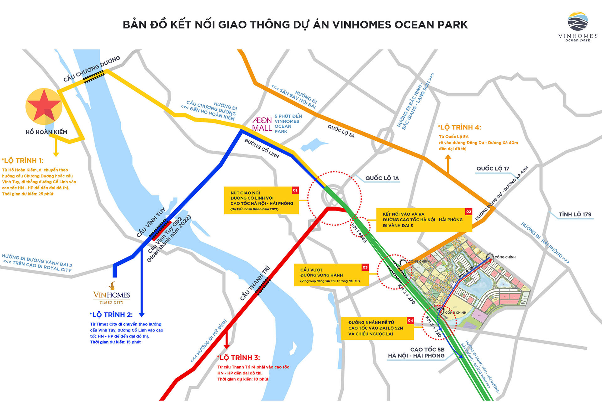 ⇒ Hạ tầng khu Đông liên tục được đầu tư mạnh mẽ như cầu Vĩnh Tuy 2, các tuyến đường kết nối cao tốc… giúp cư dân dễ dàng di chuyển về trung tâm chỉ khoảng 15–20 phút.